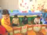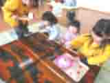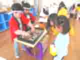 今年も子ども達のおみせやさんが始まりました。お店の当番も、ぱんだ組きりん組、らいおん組の子ども達が縦割りのグループで開いています。今年は、温泉マークの「とよにしゆ」が増えて、更に賑やかになりました。「ぱんだ銭湯」のような看板のある湯船の他に、卓球、ホッケー、的あてもあります。売店には美味しそうな牛乳やコーヒー牛乳、イチゴミルクもあります。この日は、らいおん組の子ども達が、うさぎ組の子ども達をお迎えに行って、手を引いてお店屋さんや温泉をまわっていました。おみせやさんは、元気に「いらっしゃい!」と言ってお客さんを呼び込んだり、お金の受け渡しをしたりしています。縦割りで上の子が下の子をエスコートしたり、買い方や食べ方を教えたりしている様子がとても睦ましく微笑ましいです。金曜までお店屋さんは開いています。