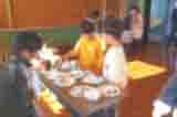 らいおん組の子ども達が、豊浜西小学校の1年生の子ども達からご招待を受けて、ドングリのおみせやさんに行ってきました。1年生の子ども達は、らいおん組の子ども達一人ひとりに、子ども達が考えたおみせやさんを書いた招待状と、おみせやさんをまわるスタンプカードを届けてくれました。保育所で行く前にらいおん組の子ども達は「とっても楽しみ。」とうきうきしていました。小学校の教室に入って、最初自己紹介をしました。1年生の子ども達は自分の名前と好きな教科を言いました。らいおん組の子ども達は同じく自分の名前と、好きな食べ物を言いました。みんなはっきりと伝えることができました。らいおん組の子ども達は、ボーリングやくじびき、たべものやさんなど6つのおみせやさんをまわりました。それぞれのおみせやさんでは、ドングリや松ぼっくり、紙コップなどをうまく使って、アクセサリーやたべものや、おもちゃなどが作ってありました。1年生の子ども達は、らいおん組の子ども達に遊び方をていねいに説明して上手に遊んでくれました。お帰りの時にはプレゼントももらいました。保育所の頃と比べるとずいぶん成長を感じました。らいおん組の子ども達も小学生になったら、また招待してくれるかな。どんな小学生になるか楽しみですね。