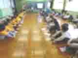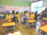豊浜西小学校の1,2年生からのご招待で、らいおん組の子ども達が交流会に行ってきました。あいにくこの日は雨の予報が出ていて、傘が必要になり、前日のメールで用意してもらいました。保育所では初めての傘を使っての移動でしたが、子ども達はぶつからずに上手に歩行することができました。保護者の皆様には傘のご協力ありがとうございました。小学校3階の会場では、始めに小学校で習う教科のことを1年生の子ども達が発表してくれました。次にじゃんけん列車をみんなでしました。それからグループに分かれて1年生の子ども達が手を引いてくれて、小学校の図書室や、音楽室などの教室の見学に連れってくれました。それぞれの教室では、2年生の子ども達が「この部屋は〇〇です。この部屋では…。」と言って部屋の説明をしてくれました。小学校の子ども達が育てたひまわりの種とメダルをプレゼントにもらいました。らいおん組からは子ども達が作ったカレンダーを贈りました。小学校の子ども達が、保育所の子ども達に丁寧に説明したり、引率してくれたりしている様子にとても感心し、成長を感じ嬉しく思いました。らいおん組の子ども達も小学校生活が待ち遠しいことだと思います。今日の経験で小学校がより身近に感じられるようになったことだと思います。小学校の1,2年生のみなさんありがとうございました。