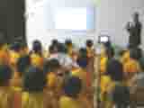 ぱんだ組、きりん組、らいおん組の子ども達が、市役所の危機管理課の方に来ていただいて、防災のお話を聞かせていただきました。今日聞いたお話は、「大雨・台風からの避難」「ハローキティーとまなぼう!ぼうさいくんれん」(DVD)「地震発生時の行動」「むしむし村の防災訓練」(DVD)でした。避難のお話では、保育所の訓練でも使っている、「お・か・し・も」という行動を分かりやすくした合言葉を教えてもらいました。意味は同じですが、保育所では、駆けないの「か」の部分を、走らないの「は」と言っています。他は子どもに聞いてみてください。きっと覚えていると思います。ダンゴムシのポーズもとりました。両手でしっかりと首の頸椎の上をカバーするようにととても丁寧に教えていただきました。11月には地域の方々にもご協力を頂いて避難訓練をします。子ども達も家族も被災しないように祈りますが、いざというときに落ち着いて行動がとれるように今日学んだことを生かして訓練を続けたいと思います。