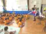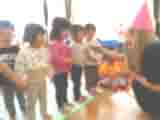 4月の誕生会がありました。4月生まれのお友達は全部で3人です。お誕生おめでとうございます。一つ大きくなりましたね。4月のゲストは「ゆめきら組」さんです。ゆめきら組さんは、セーラームーンの格好で来てくれました。「かえるのうた」や、「きらきら星」やアニメの歌など子ども達の知っている歌をたくさん歌って楽しませてくれました。子ども達も一緒に歌ったり手拍子をしたりしてのりのりでした。アンコールにも応えてくれて、子ども達からは手作りのプレゼントを渡しました。
