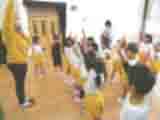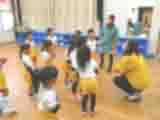 ALTの先生がきて、きりん組とらいおん組の子ども達に外国語活動をしてくださいました。今日のキーワードは、「How many?」でした。どちらのクラスも同じように、初めに先生はハムスターのイラストをプラスチックのケースに貼って、「How many?」と子ども達に貼った数を尋ね、子ども達が、「ワン」とか「ファイブ」とか言ってその数を答えました。次に、先生が言った数だけの人数でグループを組みました。直ぐに組める時ばかりではないので、先生も入って人数を合わせました。最後は、How many?を使って、だるまさんが転んだのようなゲームをしました。オニが数字を言ってその数だけ前に進みます。子ども達はワン・ツーと数を数えながら張り切って前に進みますが、その分オニに近づいてしまいます。最後はオニがゼロと言ってみんなを追いかけます。あてられた子が今度は鬼になります。「How many?」の使い方をいろいろ工夫して教えてくださいましたが少しはわかったかなあ。最後に先生からご褒美のシールをもらってお礼を言いました。